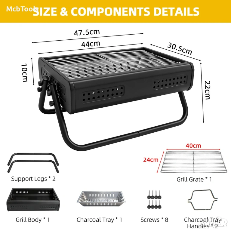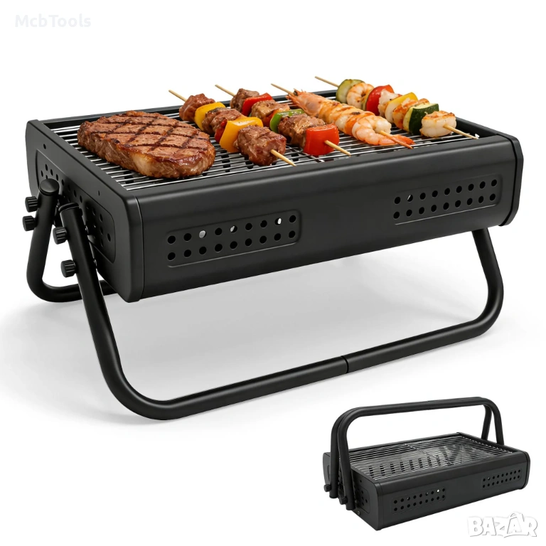 Насладете се на сочни и хрупкави меса, риба и зеленчуци с тази преносима скара на дървени въглища! Идеална за барбекюта на открито, като къмпинг, дворове и екскурзии.