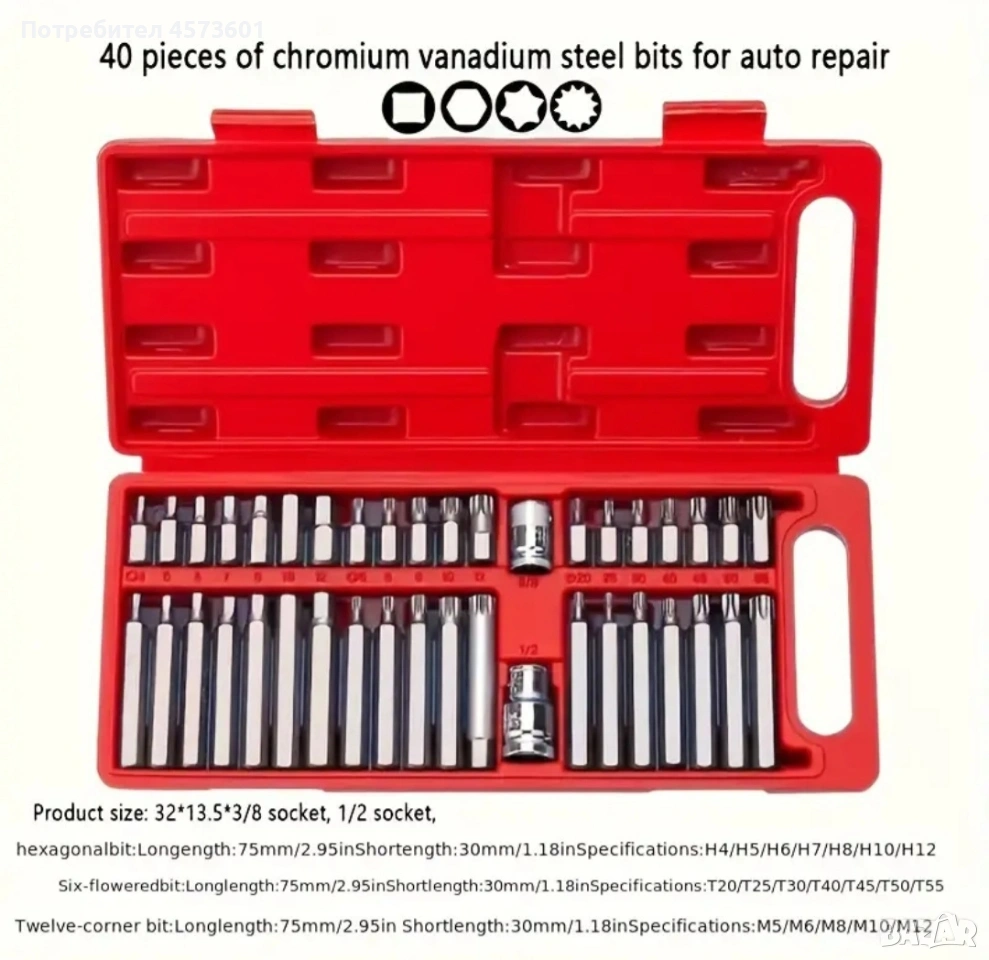 Комплект накрайници – Hex, XZN и Torx 40 части. → Обява 54090653
