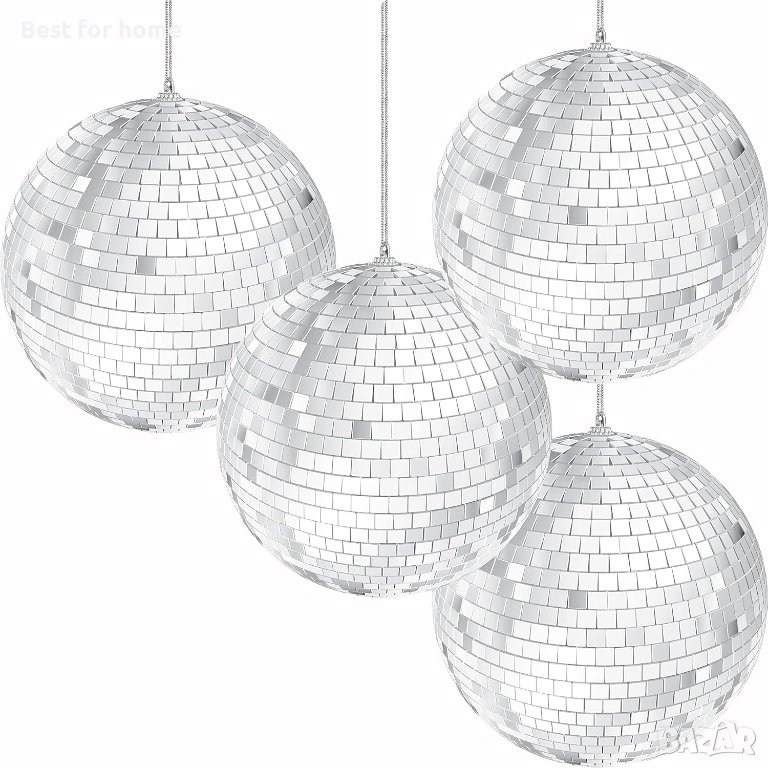 Пакет от 4 огледални диско топки с диаметър 10 см, сребърни висящи топки