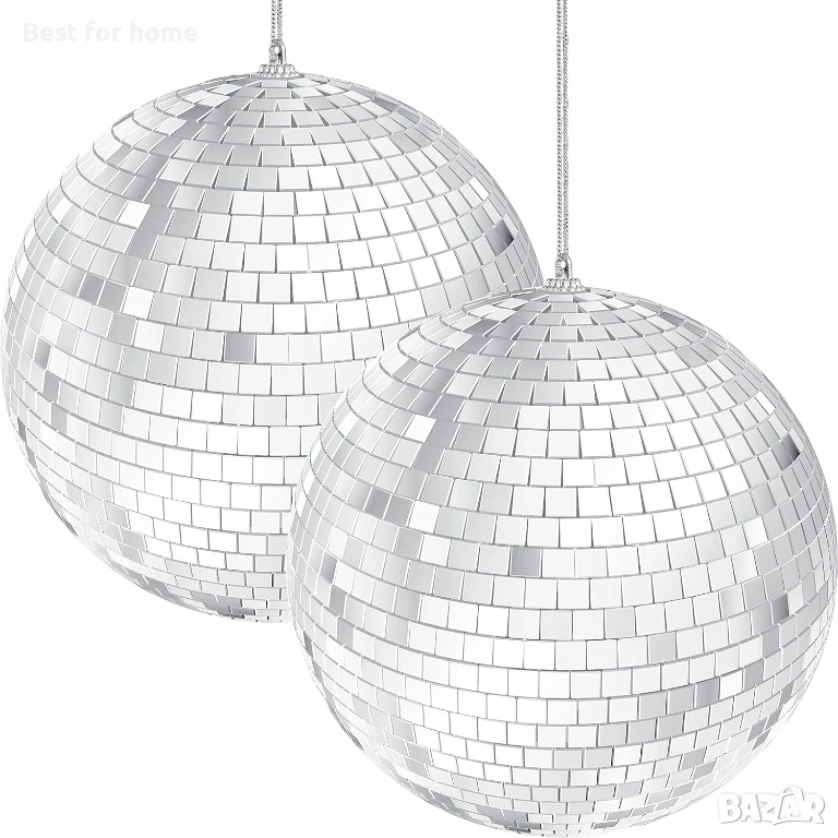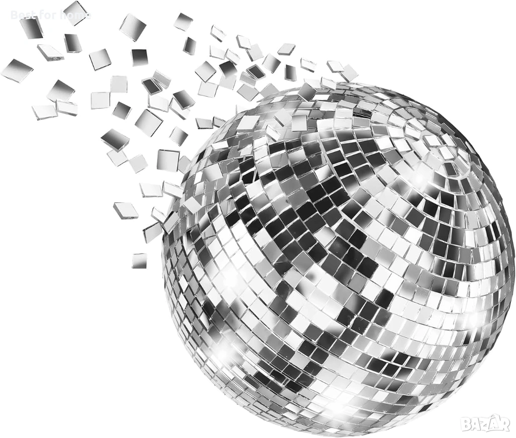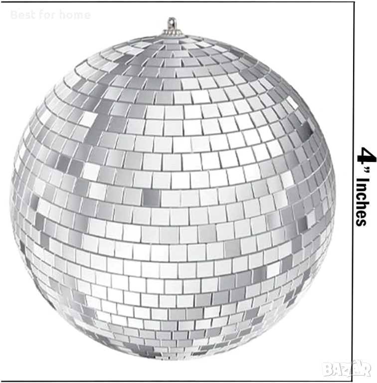 Пакет от 4 огледални диско топки с диаметър 10 см, сребърни висящи топки с прикрепен шнур за пръстен, отразяващи светлина, забавна парти декорация, парти декорация