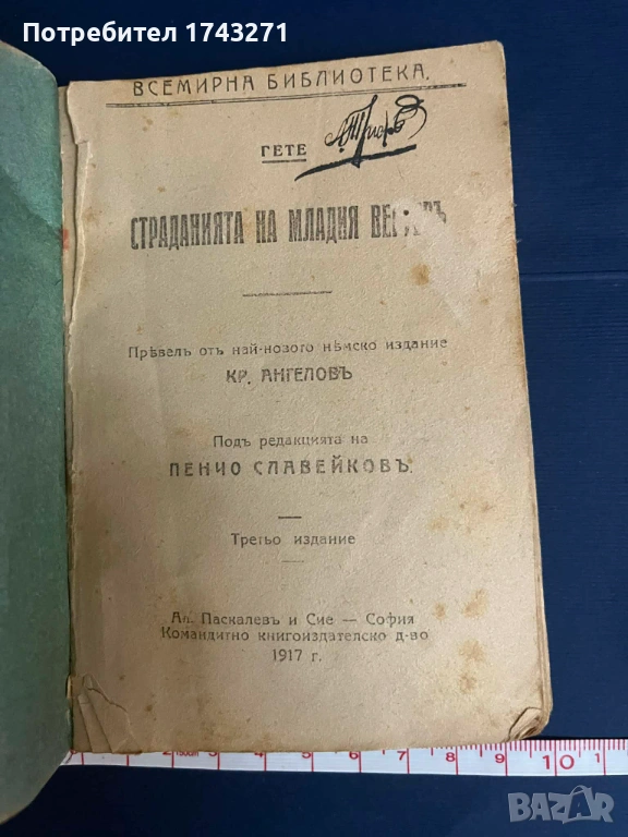 "Страданията на младия Вертер"  от Гьоте издание 1917 г. "Всемирна библиотека" , снимка 1 - Антикварни и старинни предмети - 54090866 "Страданията на младия Вертер"  от Гьоте издание 1917 г. "Всемирна библиотека" , снимка 2 - Антикварни и старинни предмети - 54090866 "Страданията на младия Вертер"  от Гьоте издание 1917 г. "Всемирна библиотека" , снимка 3 - Антикварни и старинни предмети - 54090866 1/3