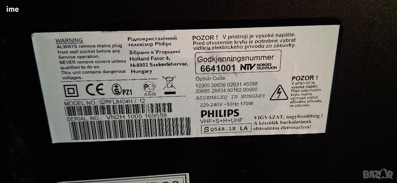 Power Board PLHL-T826D. Свален от LED Телевизор Philips 32PFL8404H/12 с панел LK315D3LZ93...
