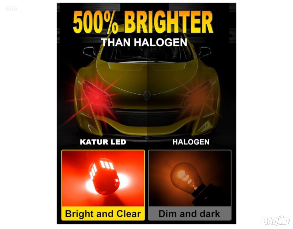 ★【500% УЛТРА ВИСОКА ЯРКОСТ】 3157 T25 LED крушка използва най-новите 2835 LED чипа, DC 9-32V, червена светлина, Вход: В: 30W/бр., Д: 8W/бр. Лумени: В: 3000LM/бр., Д: 850LM/бр. 360° пълноъгълно осветление, без тъмни петна или сенки, дори при лошо време, може да излъчва ослепителна светлина, за да направи шофирането ви по-безопасно.