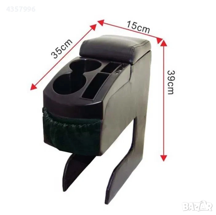 Универсален подлакътник за автомобил с барче и две поставки за чаши