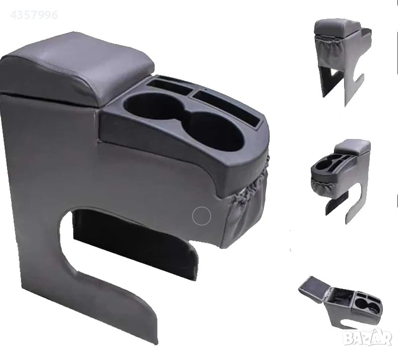 Функционалност: Разполага с две поставки за чаши, отделение за съхранение на вещи (барче) и поставка за мобилен телефон.