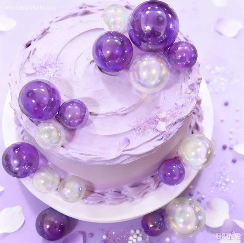 19 броя лилави прозрачни топчета топки за декорация на торта , снимка 1 - Декорация за дома - 54090989 19 броя лилави прозрачни топчета топки за декорация на торта , снимка 2 - Декорация за дома - 54090989 1/2