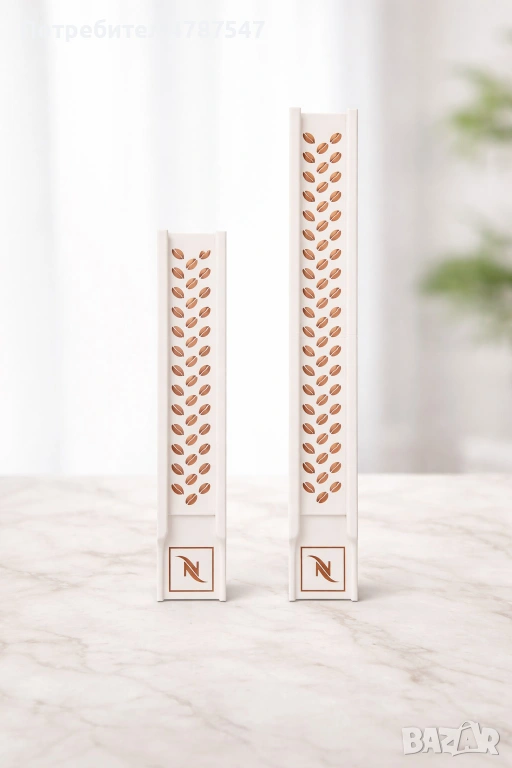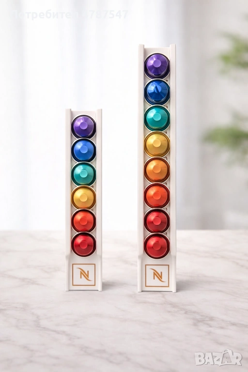 Практичен и стилен стенен държач за тънки кафе капсули, създаден за удобно съхранение и лесен достъп до любимото ви кафе.