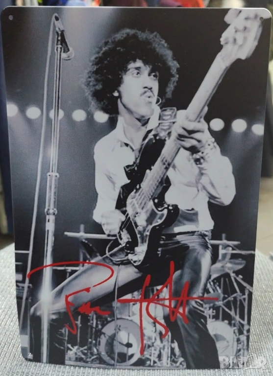 Това е една от тях, метална табела на Phil Lynott с негов автограф,но с лек транспортен дефект(изкривяване в единия ъгъл)