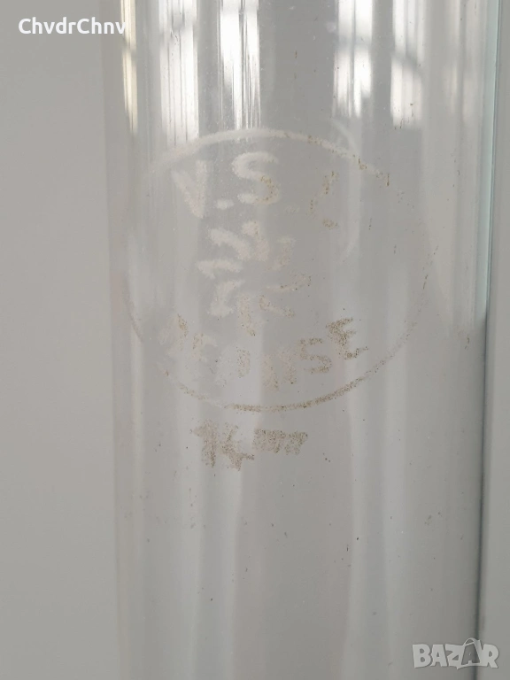 Височина 62 см, на три части - основа (30 см), контейнер (20 см) и стъкло (27 см).