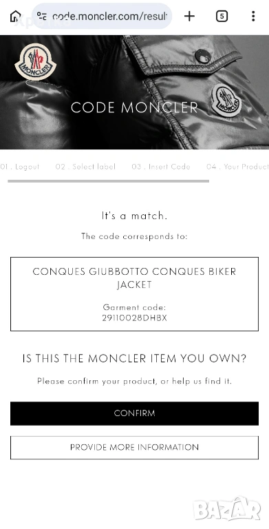 100% оригинално, с QR код за проверка. Проверено в code.moncler.com, може да видите екранна снимка от проверката на последна снимка в обявата ни.