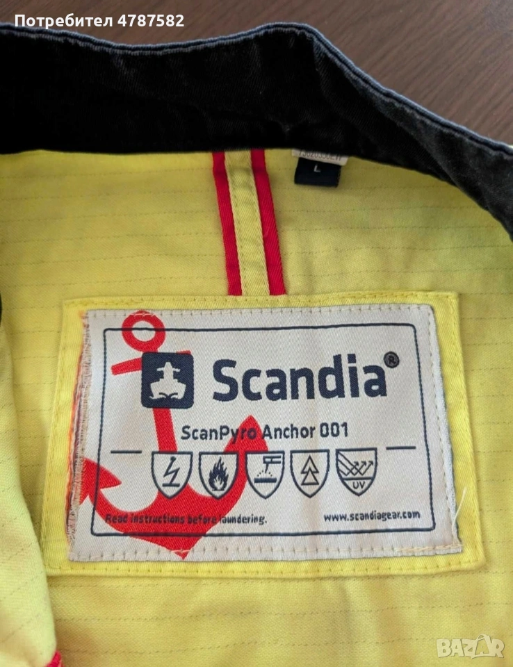 Професионално морско яке Scandia. Обличано е броени пъти, в отлично състояние. Характеристики Многоопасно: заваряване, висока видимост, огнеупорно (FR), антистатично, електрическа дъга, UV защита Огнеупорни светлоотразителни ивици 50 мм (2,0 инча): гърди, талия, рамене, ръце и гръб Джобове: на гърдите (x 2) и на ръкава Две радио/газови контури Регулируема на: китките и талията Велкро ленти за значки за ранг и име Двупосочно закопчаване с цип YKK отпред Външна част: 99% мерсеризиран памук, 1% въглеродни влакна Висока видимост: 80% памук, 19% полиестер, 1% въглеродни влакна Проектиран за носене в комбинация със ScanPyro Anchor Pro 002 Цена като ново 160 USD: /scandiagear.com/product/scanpyro-anchor-pro-001/ За Варна, Бургас, Русе, Шумен - може лично предаване