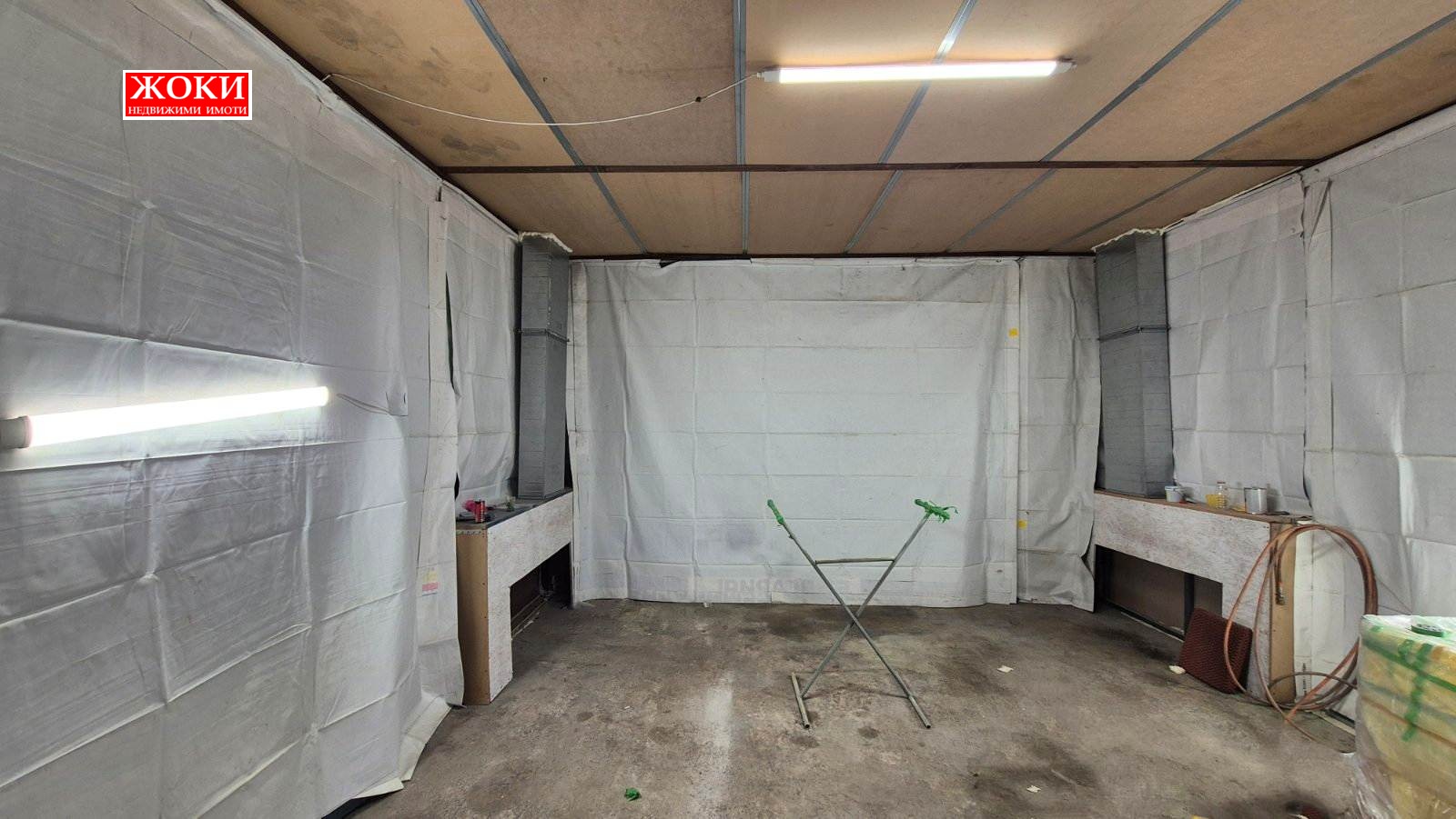 Агенция за недвижими имоти ЖОКИ предлага под наем промишлено помещение с метална конструкция и под асфалт, с площ от 120 кв.м. и височина около 4.5 м. Състои се от зала и санитарен възел. В имота има трифазен ток, водопровод и канал. Има голяма портална врата.