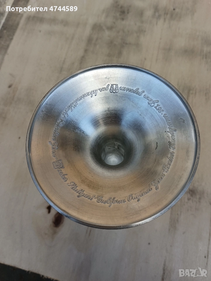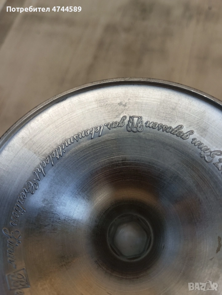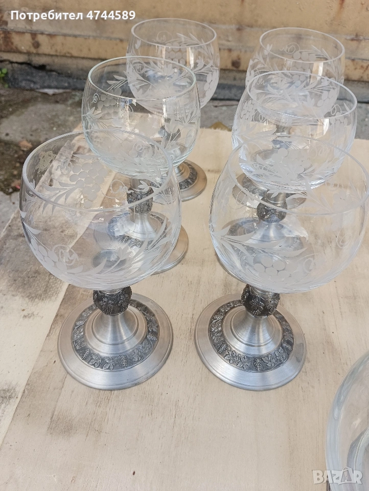 Комплект с 18 броя чаши и графа. с калаени орнаменти и щемпи.