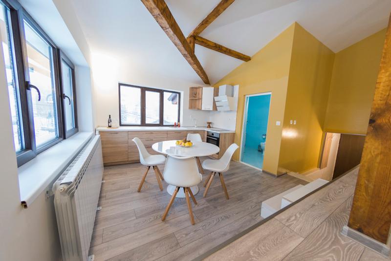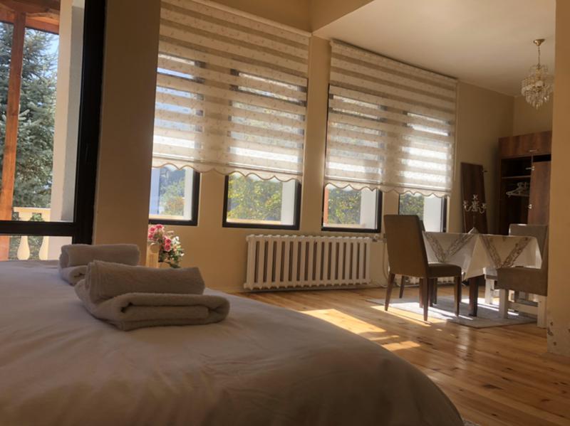 Разположена в близост до Киноцентъра, в подножието на Национален парк Витоша и на 15 минути път с кола от центъра на София. Намира се в западната част на квартал Драгалевци, който е една от най-предпочитаните, безопасни и тихи зони в София.Къщата разполага с напълно обновени стаи с телевизор с плосък екран, WiFi, удобни работни зони. Състои се от 8 просторни независими апартамента със самостоятелен санитарен възел, всекидневна и обща кухня, градина, барбекю, сервизни помещения и паркинг. Отоплението на къщата е гарантирано от 2 горелки на природен газ (има и 3 климатика и 2 камини). Къщата е реновирана и изолирана през 2018г. с променена вода и електрическа инфраструктура.