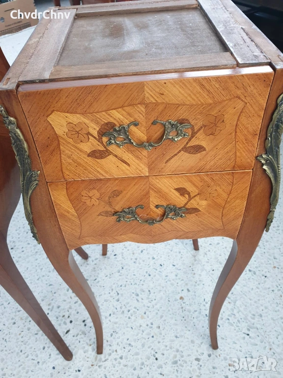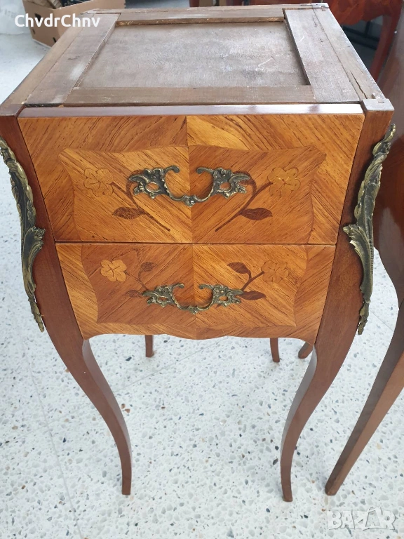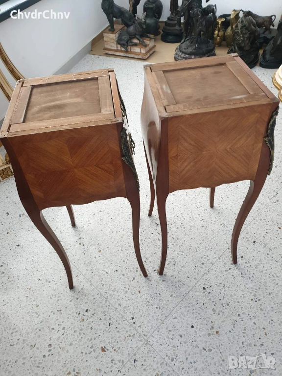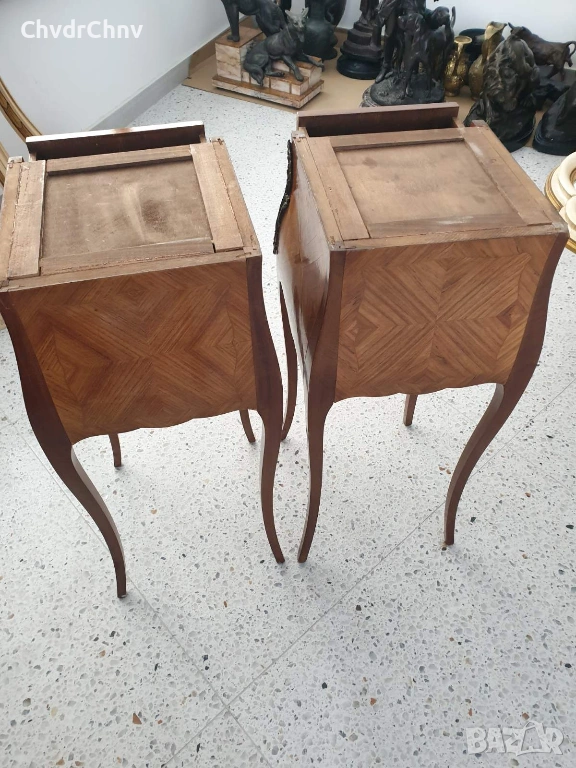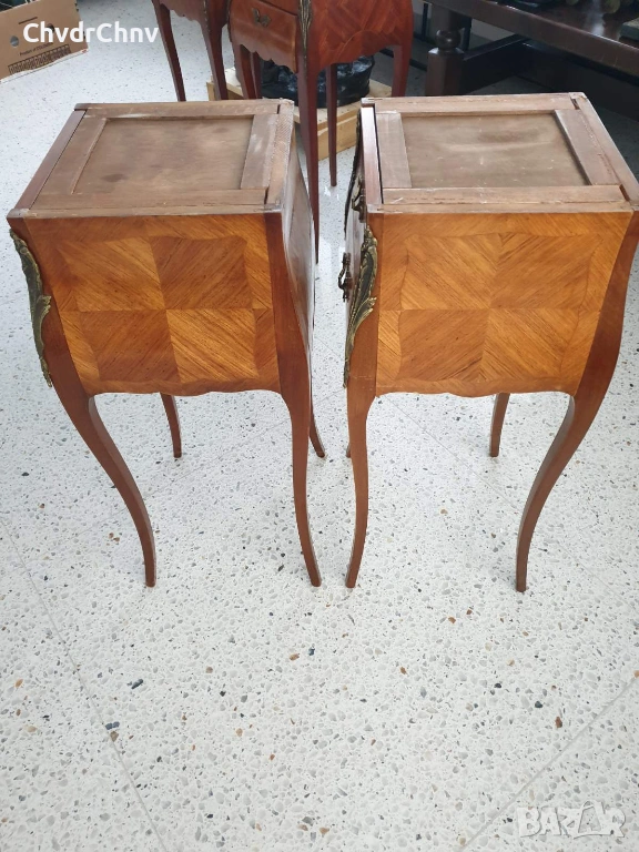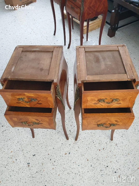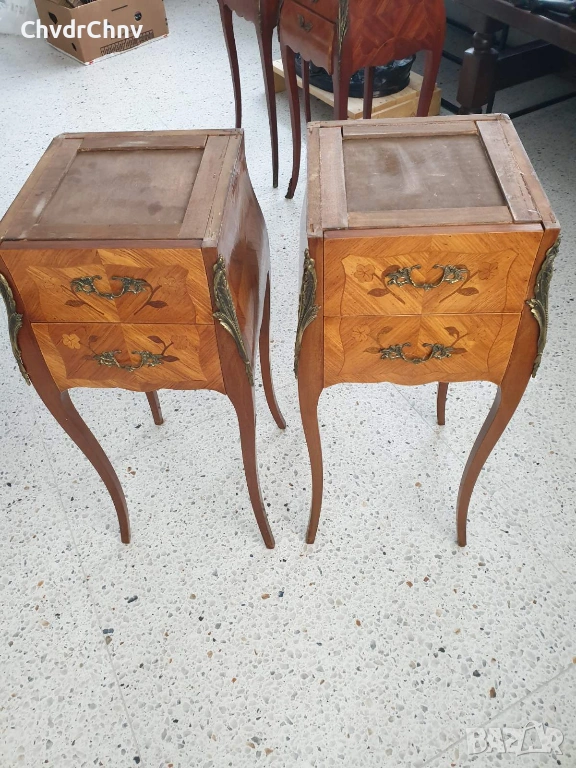2бр-чифт стари френски дървени конзолни масички-шкафчета за легло