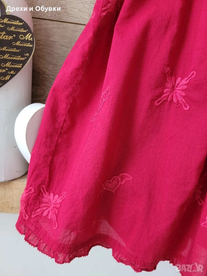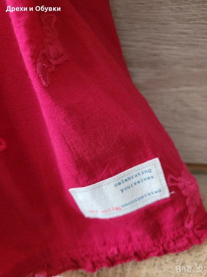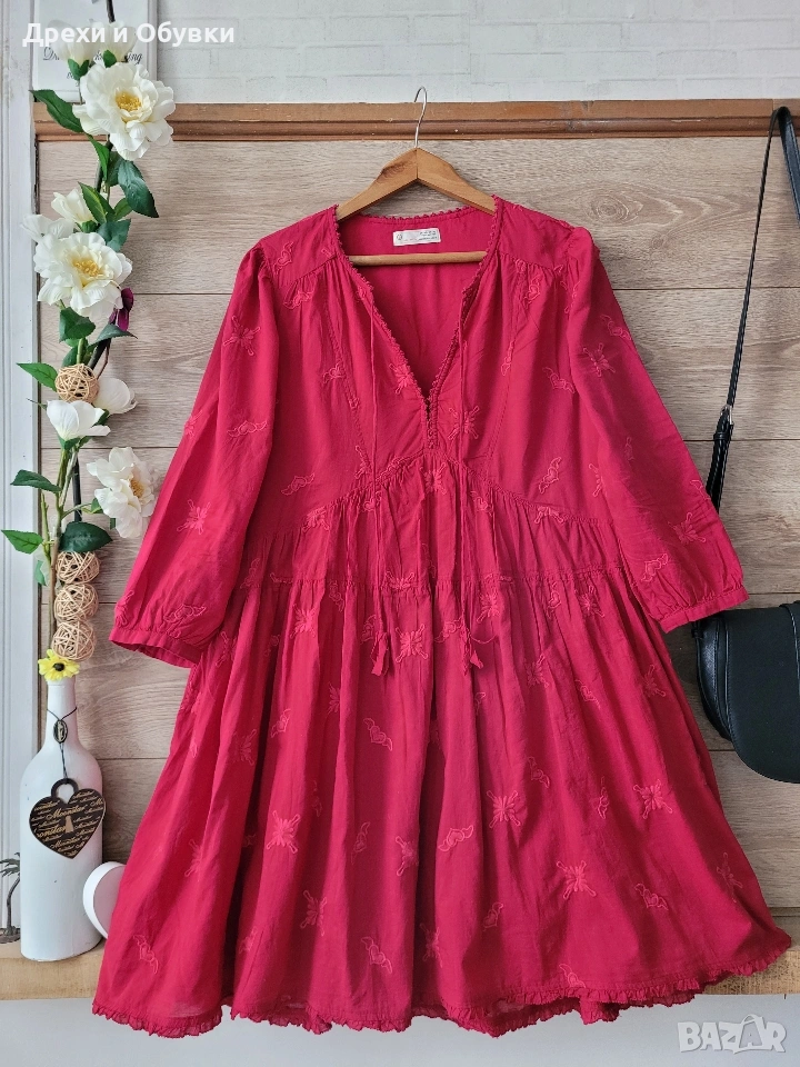 Разкошна разкроена рокля на шведската марка Odd Molly. Модела е изработен от 100% памучна материя. Допълнителна подплата ( също памучна). Красиви 3D бродерии в плата. Копчета при китките. За ежедневието с кецове, сандали или боти. Стои страхотно! Универсален размер. Дълга 90см, гръдна до 98см. Перфектна за Л Надолу в ханша е силно разкроена за да пада красиво по тялото. Още снимки в коментар. Цена 30€