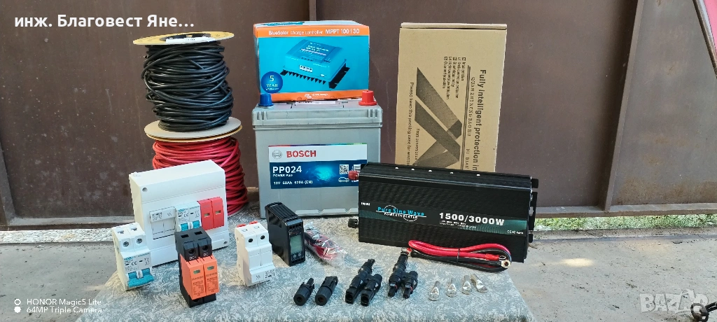 съдържа : (Инвертор (9)чиста синусоида 50 херца осигуряващ 1500 вата