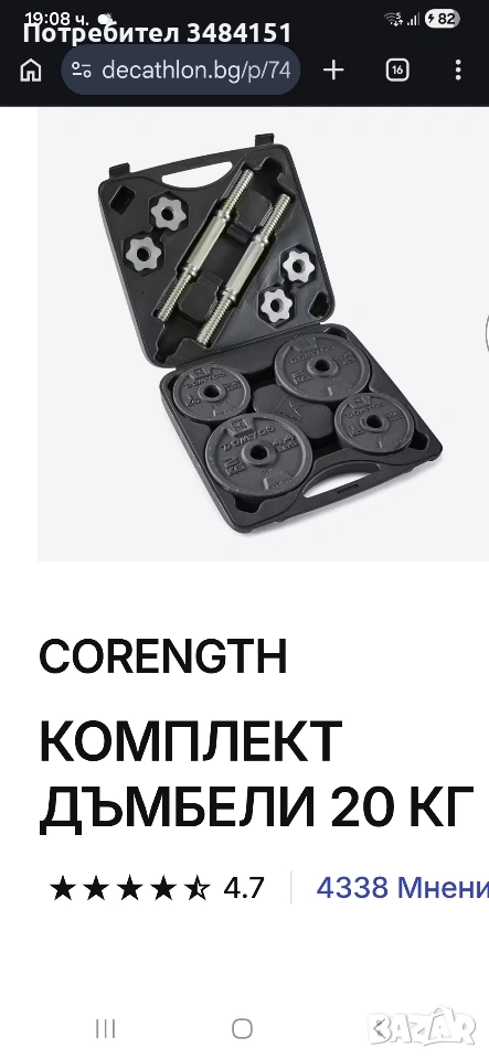 Дъмбели 20 кг., снимка 1 - Фитнес уреди - 54091967 Дъмбели 20 кг., снимка 2 - Фитнес уреди - 54091967 1/2