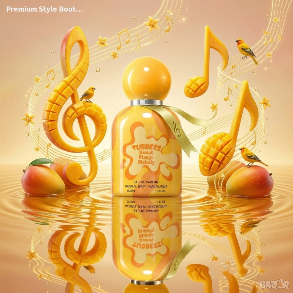 Производител: Tubbees Име на продукта: Sweet Mango Melody Тип: Парфюмна вода (Eau de Parfum) Обем: 50 мл (1.7 FL.OZ.) Ароматна група: Плодови, гурме Връхни нотки: манго, портокал, ананас, бергамот — живи, слънчеви и енергични. Средни нотки: жасмин, крем, манго, роза, пудинг — кремообразни и флорални, придаващи дълбочина. Базови нотки: мускус, ванилия, сандалово дърво — топли, уютни и дълготрайни. Препоръчителна употреба: За всекидневно носене, подходящ за ден и неформални вечери; унисекс композиция, която се адаптира към индивидуалната химия на кожата. Характер: Леко сладък, слънчев, топъл и променящ се във времето — подчертава оптимизма и индивидуалността.