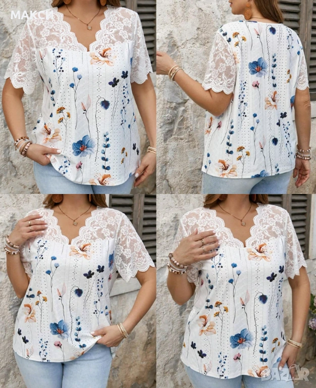 Макси еластична красива блуза на мини дупчици+ приказна дантела в нежен флорален десен → Обява 54092042