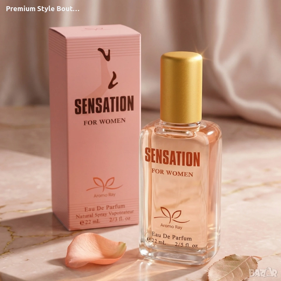 Технически характеристики на Sensation 22 мл – Свеж цветно-плодов мускусен аромат с дълготрайно излъчване Основни характеристики: Обем: 22 мл Тип: Eau De Parfum (парфюмна вода) Ароматна група: Цветно-плодов мускус Връхни нотки: свежи цитрусови акорди, плодови нюанси (круша, ябълка) Средни нотки: роза, жасмин, момина сълза Базови нотки: бял мускус, амбър, леки дървесни тонове Подходящ за: ежедневие, офис, дневни събития Ключови SEO думи: дамски парфюм, парфюмна вода, аромат за жени, модни аксесоари, стил, траен аромат