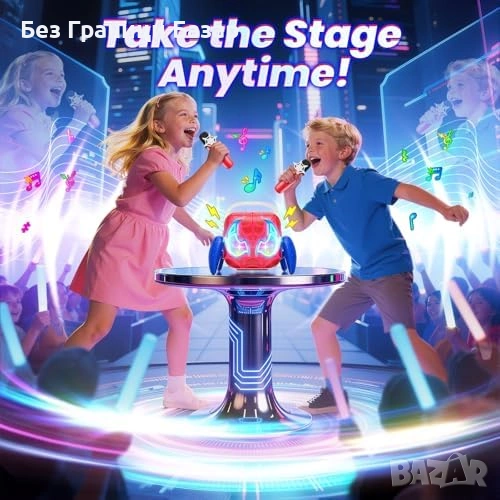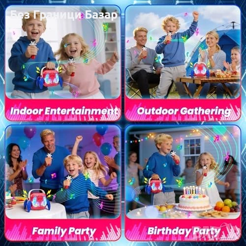 Нова играчка Детско караоке с 2 микрофона LED светлини Bluetooth идеален подарък дете