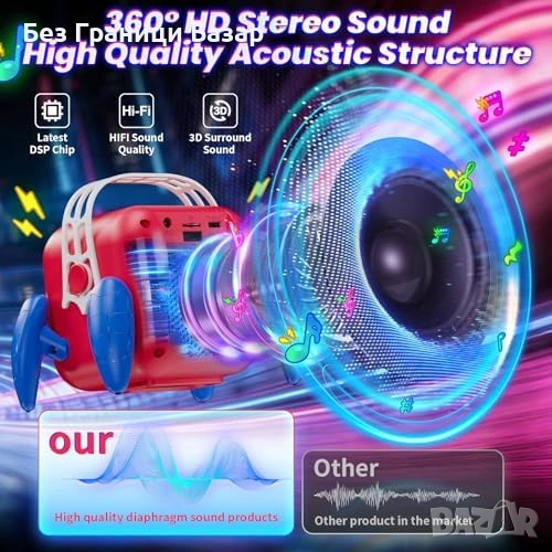 Мощен 6W звук с чисто аудио за пеене, разказване и музикални игри