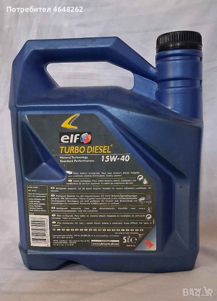 Моторно масло Elf Turbo Diesel 15W-40 5л, снимка 1 - Аксесоари и консумативи - 54092220 Моторно масло Elf Turbo Diesel 15W-40 5л, снимка 2 - Аксесоари и консумативи - 54092220 1/2