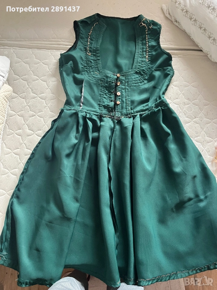 Шит е от майка , тя не е професионалист , но сукмана е имитация на сукман мисля че разложки , зелен за жена около размер М