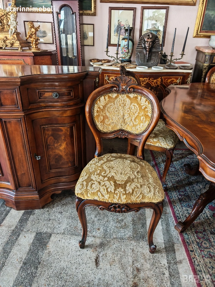 ​СТОЛОВЕ: 6 броя с луксозна златиста дамаска и орнаментирана дървесина.