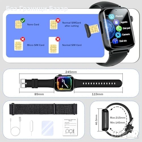 Детски смарт часовник с 1.83" сензорен HD дисплей