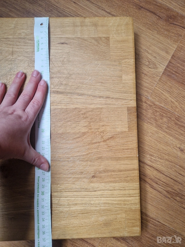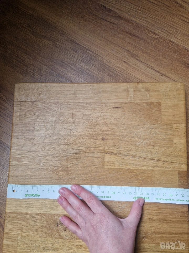 Много качествена дъска за рязане. Изненадващо е много тежка (ама мнооого) и масивна (дебелина 4см). Единствено трябва да се изпили леко, за да се заличат следите от рязане.