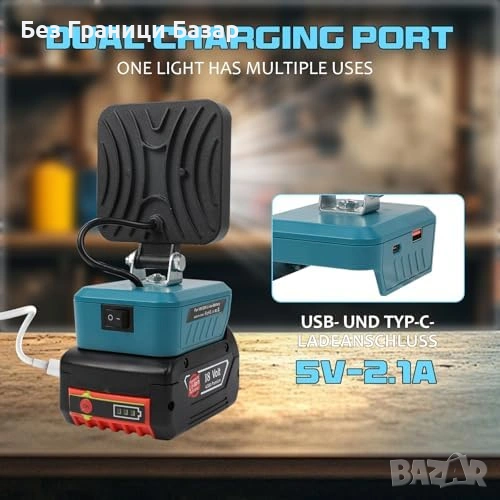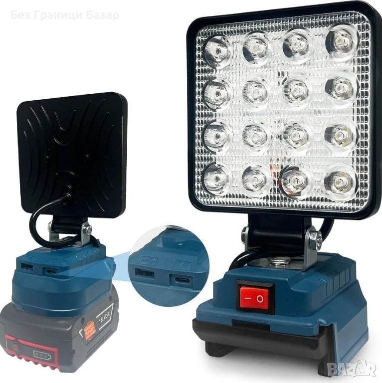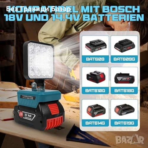 Преносима безжична LED лампа, съвместима с Bosch 18V