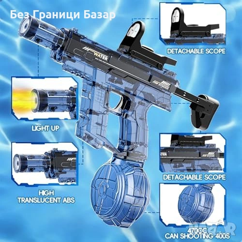 Нов Електрически воден пистолет LED 470 мл далекобоен син за деца лято игри