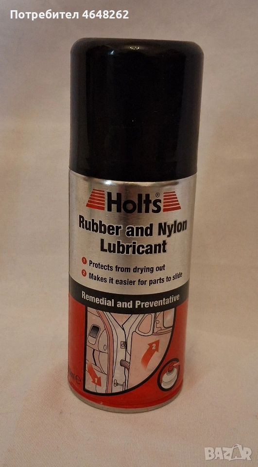Holts Rubber and Nylon Lubricant – специализиран силиконов спрей, предназначен за смазване и защита на повърхности от гума, найлон и пластмаса.
