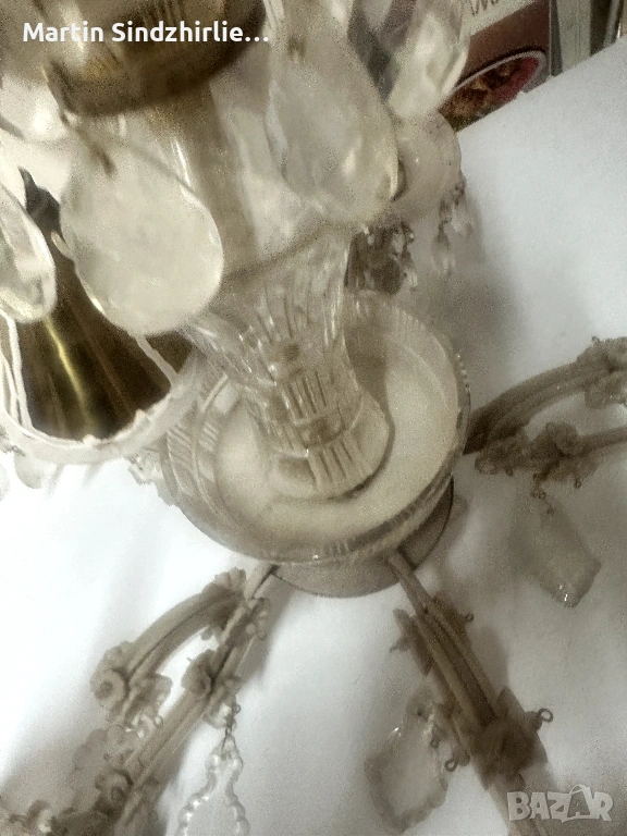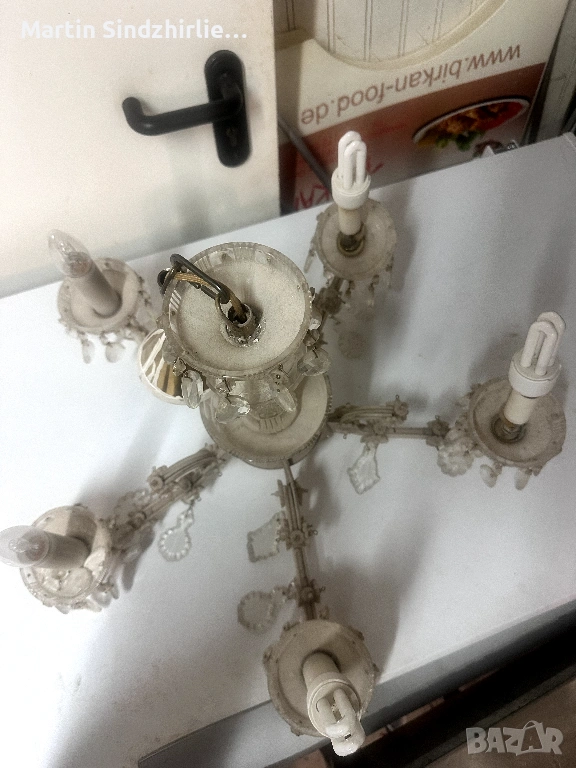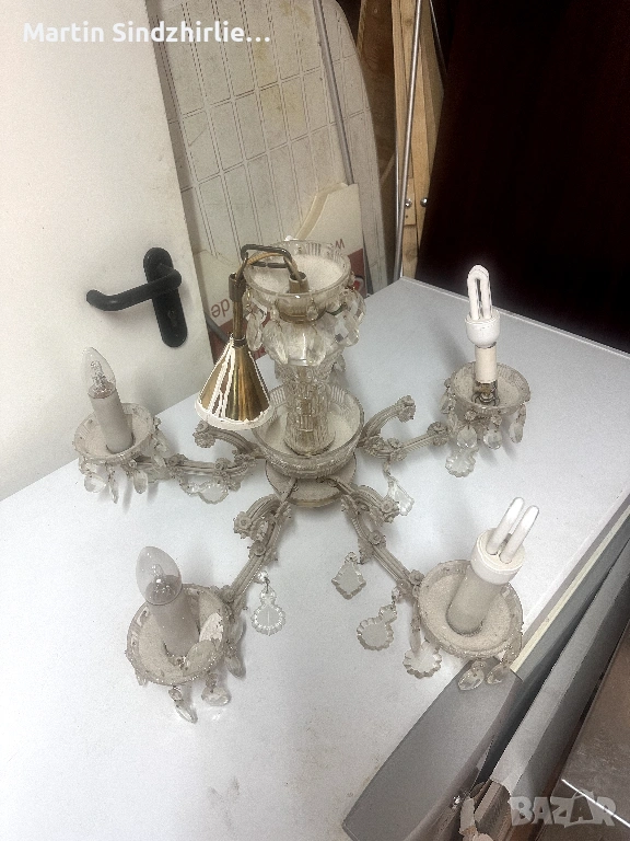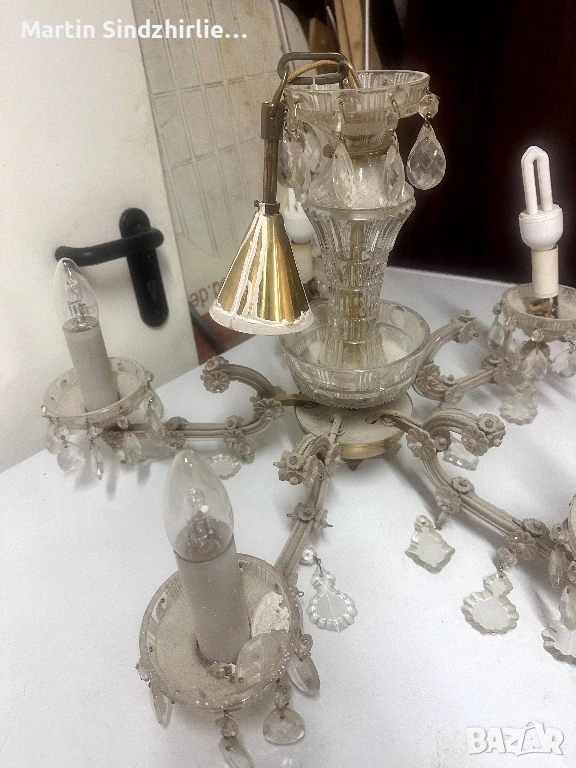 Продавам полилей ретро стил с 5 рамена и декоративни кристали Подходящ за хол спалня или заведение