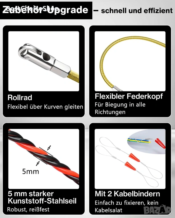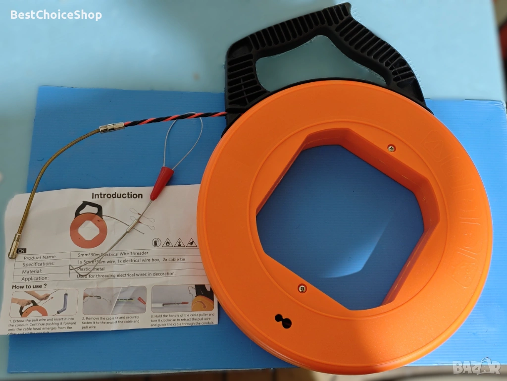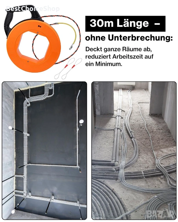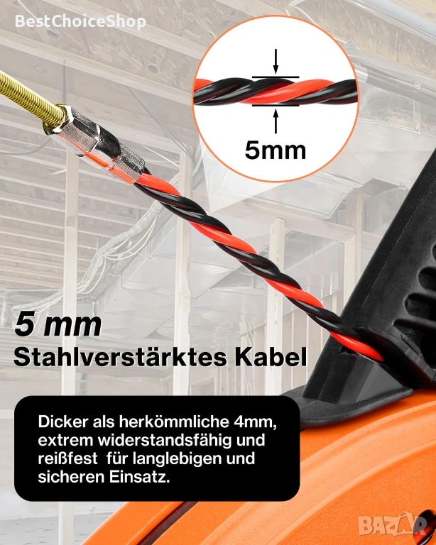 Здрава конструкция с 5 мм кабел за трудни инсталации: Нашата 30-метрова спирала за опъване с 5 мм подсилена PET сърцевина осигурява максимална устойчивост на опън и налягане - идеална за дълги електрически канали и сложни ремонтни дейности.