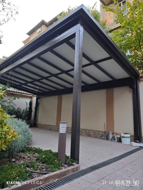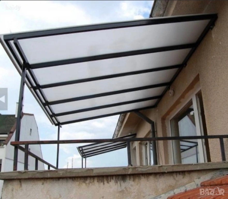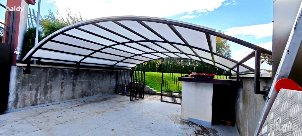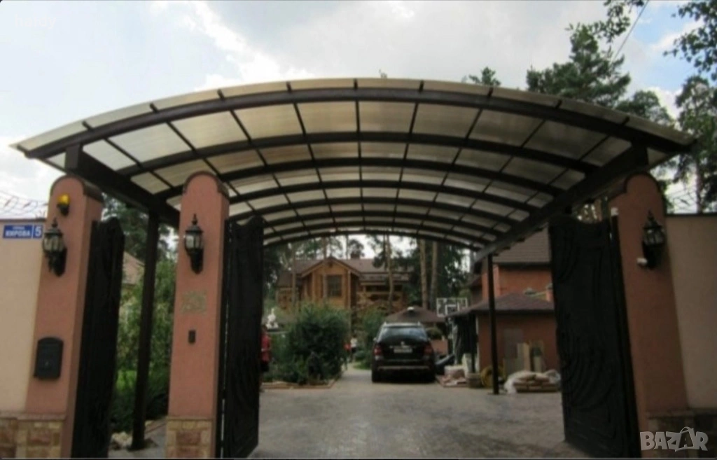 Навес , поликарбонат , сандвич панел , метални конструкции