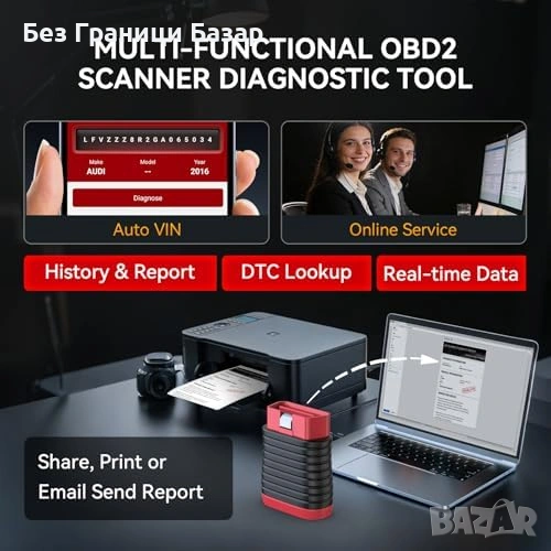 Bluetooth OBD2 диагностичен скенер за iOS, Android и таблети