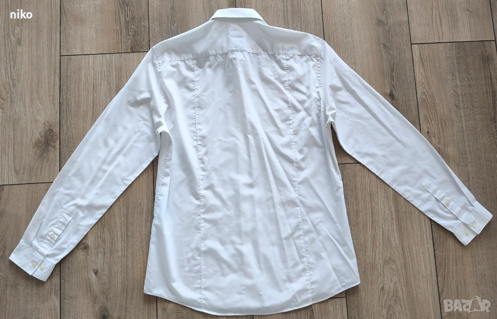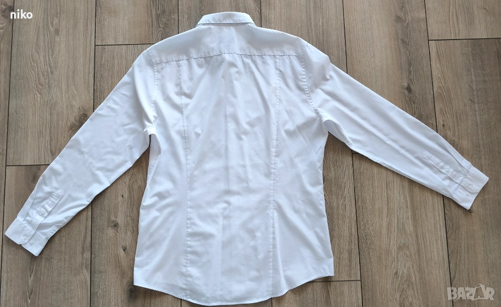 Продавам 2 бр. мъжки чисто бели ризи H&M, размер L, запазени, без следи от употреба