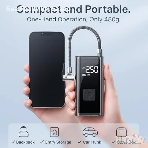 Компактен и лек дизайн, удобен за автомобил, раница или чанта за велосипед
