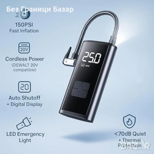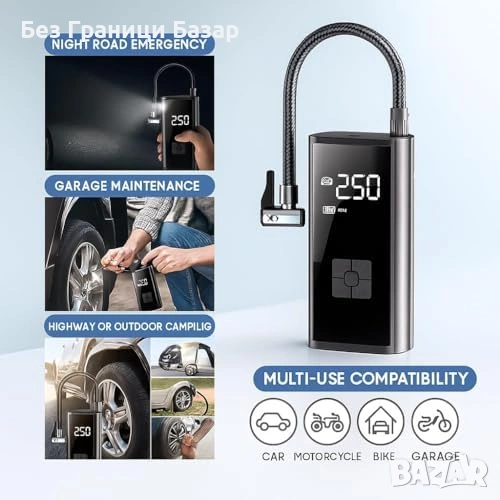 Нов Безжичен компресор Акумулаторна помпа за гуми 150 PSI за кола велосипед