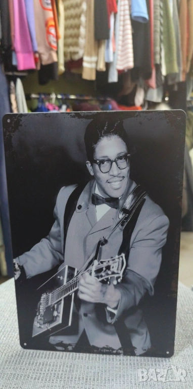 Това е една от тях,представяща метална табела(плаkет) на един от пионерите на рокенрола Bo Diddley с неговата уникална китара