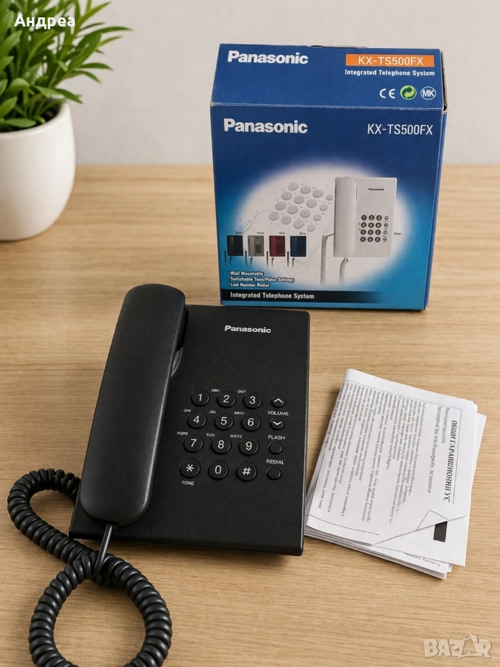 Стационарен телефон Panasonic KX-TS500FX с оригинална кутия и документи.