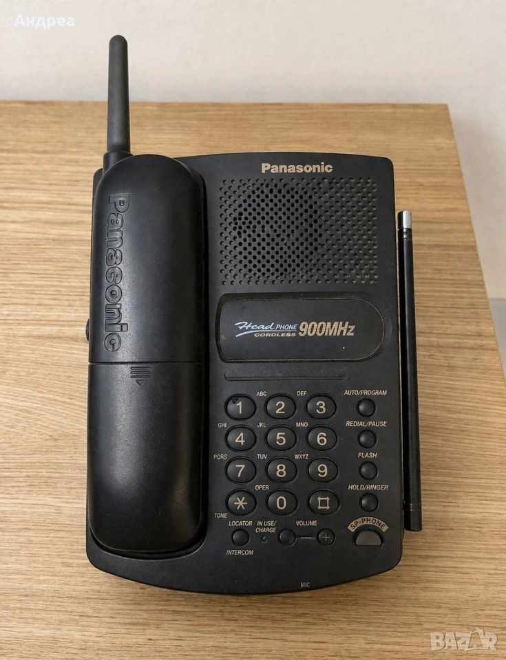 Стационарен телефон Panasonic 900MHz с база и слушалка. Подходящ за дом, офис или вила.