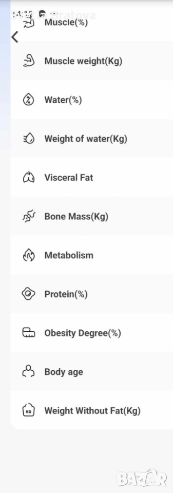 Кантар с възможност за измерване на индекса на телесните мазнини, снимка 1 - Друга електроника - 54092837 Кантар с възможност за измерване на индекса на телесните мазнини, снимка 2 - Друга електроника - 54092837 Кантар с възможност за измерване на индекса на телесните мазнини, снимка 3 - Друга електроника - 54092837 Кантар с възможност за измерване на индекса на телесните мазнини, снимка 4 - Друга електроника - 54092837 Кантар с възможност за измерване на индекса на телесните мазнини, снимка 5 - Друга електроника - 54092837 Кантар с възможност за измерване на индекса на телесните мазнини, снимка 6 - Друга електроника - 54092837 1/6