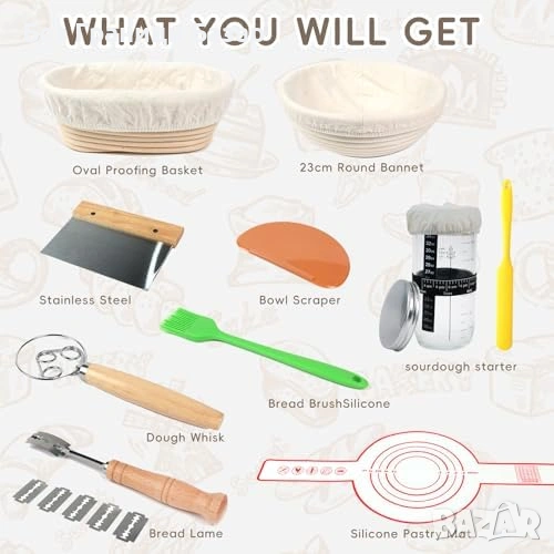 Комплект за квасен хляб с кръгла и овална кошница за втасване