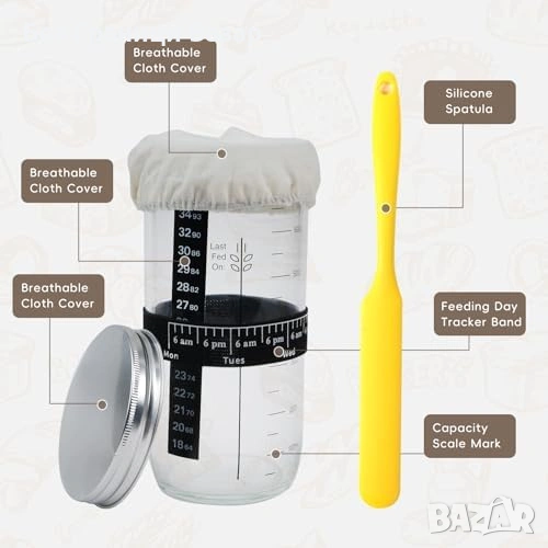 Нов Комплект за квас с 2 ратанови кошници и 2 буркана 600 мл печене хляб кухня подарък