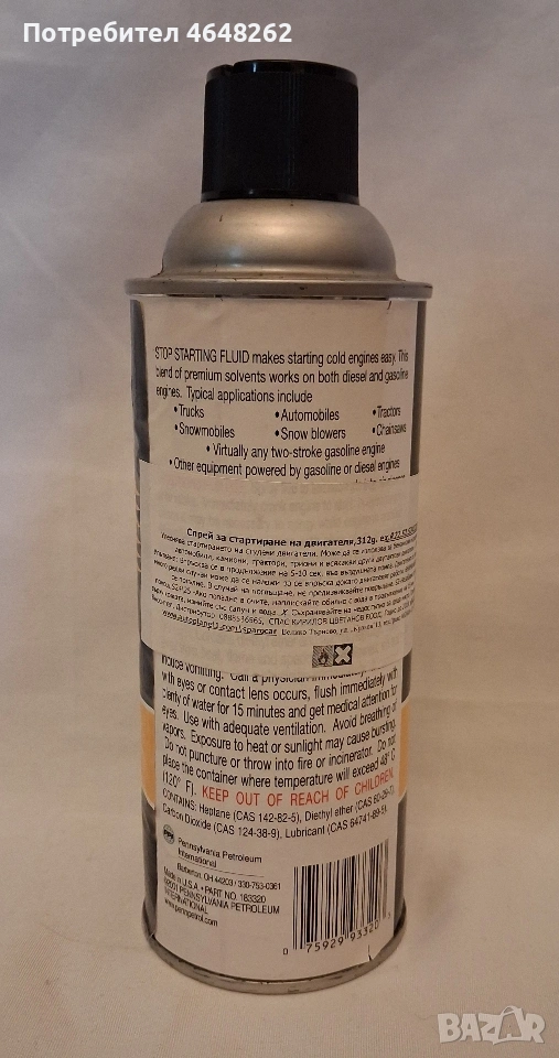 Starting fluid улесняване стартиране на двигатели 312гр → Обява 54093036