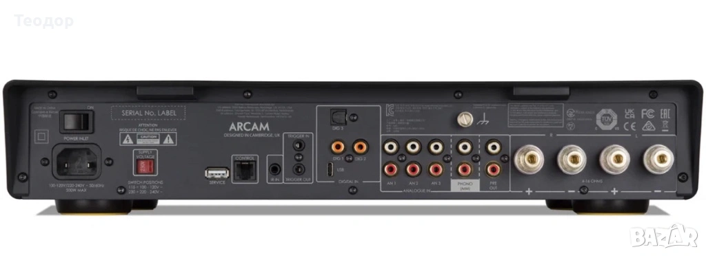 • Входове: USB-C (за директна връзка с лаптоп/PC), 3 x RCA аналогови, Цифрови (Optical/Coaxial), MM Phono за грамофон.